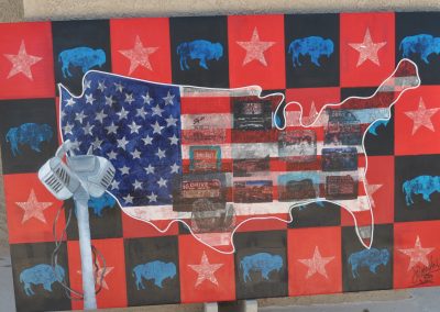40 x 71, oil, collage, leather